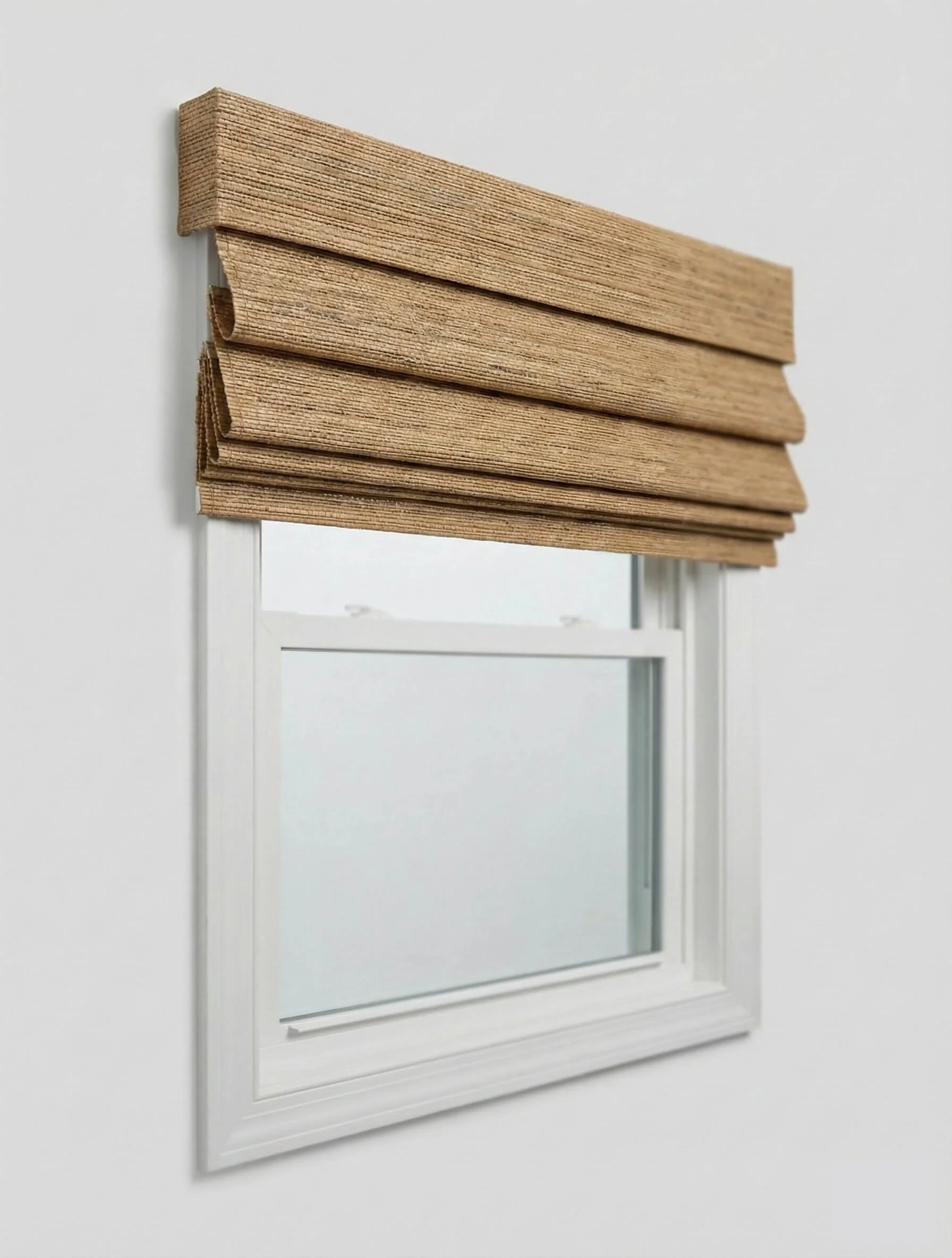 The Roman shade mechanism provides smooth lifting and precise positioning. When lowered, the panels stack neatly with minimal light gaps. When raised, the folds create architectural interest at the top of the window.